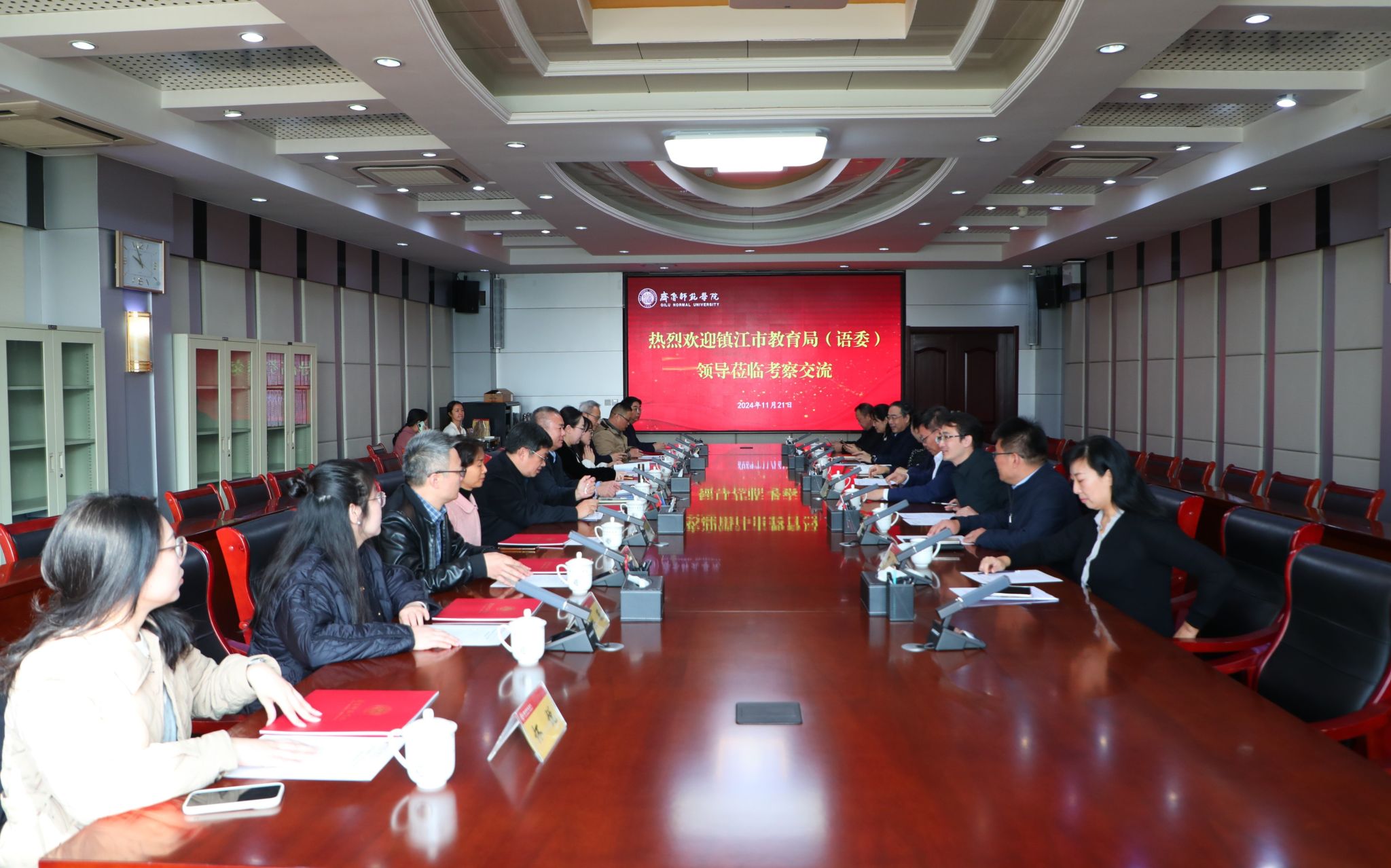 11月21日上午,镇江市教育局(语委)一行11人来校考察国家语言文字推广基地(3200威尼斯vip)。学校党委书记林松柏,党委委员、副校长,国家语言文字推广基地(3200威尼斯vip)主任孙正接待来访。双方就携手合作、共谋发展举行座谈。座谈会由孙正主持。
