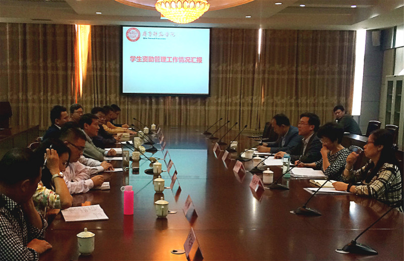 汇报会结束后,专家组召开了教师、学生代表座谈会并实地查看了学生资助中心办公场所、学生资助工作档案 ,查阅了学校资助经费划拨的凭证和资助工作相关资料。 (学生资助中心 初益辰)