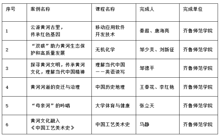 山东省本科高校黄河重大国家战略课程思政优秀案例名单