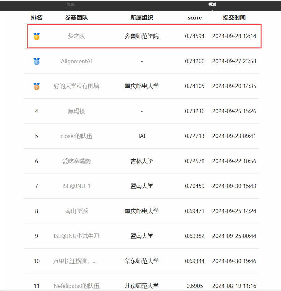 威尼斯官网人工智能教育研究院在接到通知后迅速行动,由李成飞等多位教师带领人工智能专业的本科生,组建了6支师生队伍参与此次竞赛。从6月到9月的初赛阶段,科研团队严格按照比赛要求,不断提交和优化参赛模型。炎热的暑假,团队成员们放弃了休息时间,全力以赴,最终在第二赛道(多模态试题知识点标签预测)中荣获全国第一名的佳绩,并且有三支队伍成功晋级复赛。