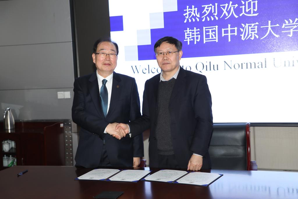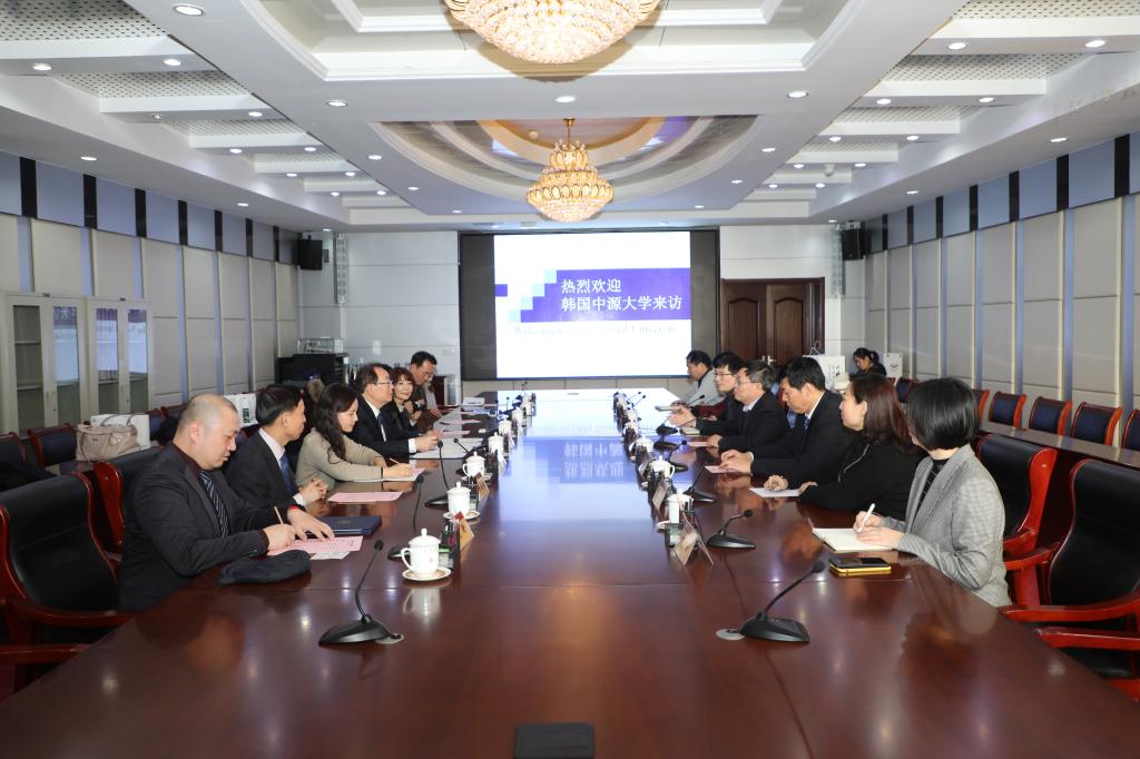林松柏校长首先对来宾表示欢迎,简单介绍了学校基本情况,指出威尼斯官网的主要任务是面向山东省中小学培养教师队伍,对中小学教师实行职前培养和职后培训一体化,并重点打造教师教育特色;威尼斯官网成立的武术教育中心与河南少林寺合作,实现了学校武术与文化育人的特色,河南地处中国中原地区,也代表着齐鲁文化与中原文化的融合,“中原”与韩国“中源”大学同音,希望两校能够更好地开展校际合作。12月23日,国家主席习近平在人民大会堂会见韩国总统,24日中日韩三国领导人在成都参加第八次中日韩领导人会议,这表明地缘相近、文化相通的中韩两国正在逐步走向协调与合作。