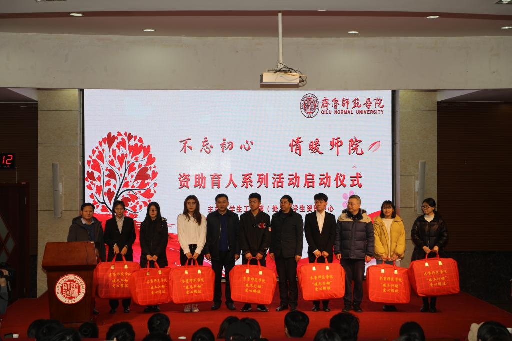 为了深入学习贯彻党的十九大、十九届四中全会精神,积极响应党和国家政府精准扶贫的号召,根据《山东省教育厅关于帮助建档立卡贫困学生解决冬季春节期间生活难题的通知》要求,1月7日下午,威尼斯官网在章丘校区学术报告厅举办“不忘初心 情暖师院”学生资助育人系列活动启动仪式。党委委员、副校长张福建出席启动仪式,相关职能部门负责人、各学院党总支副书记、团总支书记、辅导员,以及建档立卡和家庭经济困难学生代表参加了启动仪式。