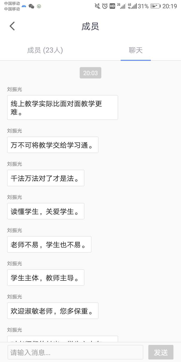 在腾讯会议中,所有思政课教师踊跃发言,积极分享线上授课以来的经验教训,共同研讨存在的问题,充分发挥了教研室团队的集体智慧和力量。为抗击疫情而采取的线上授课方式打破了传统的面授教学模式,给思政课教师教学带来较大的挑战和考验,特别是教学功力考验、信息技术考验、授课艺术和方法考验、教材重新组合考验、突发应变考验等等。马克思主义学院因时而化、因势而变,全体思政课教师积极探索学习新的教学模式方法,将新冠肺炎疫情防控鲜活案例融入课堂内容,充分发掘疫情防控中的思政教育元素,积极主动打好这场没有硝烟的战争。