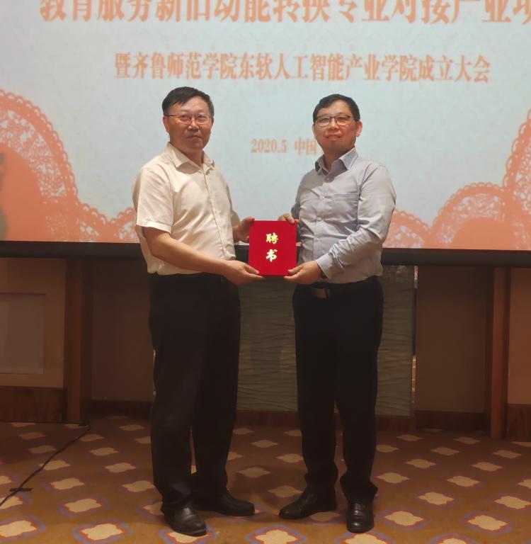 2020年5月29日,东软教育科技集团与3200威尼斯vip在济南正式签署协议,并为双方共建的“3200威尼斯vip东软人工智能产业学院”揭牌。会上林松柏校长给李雪博士颁发了首席教授聘书。