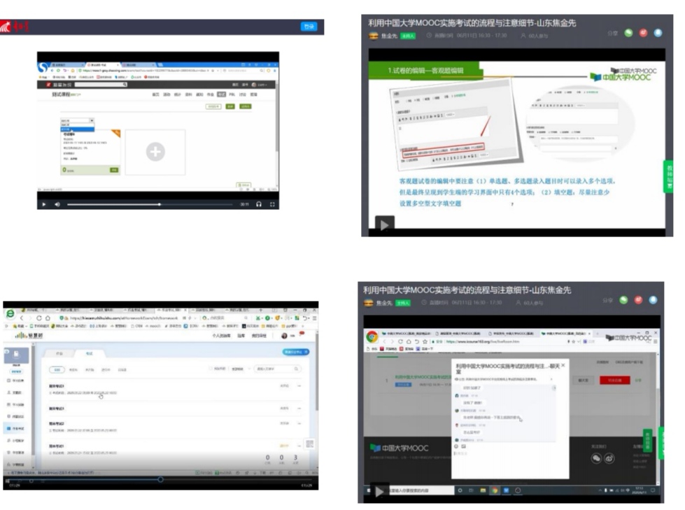 培训会上超星、智慧树和中国大学慕课MOOC的主讲人分别围绕自己的平台系统从系统注册、课程建立、题库录入、试卷生成、考试发布以及教师和学生信息维护方面对各自的考试平台系统进行了全方位的讲解和操作演示。会上参会教师还就系统考试平台如何使用、如何组织考试、考试材料如何存档、如何监考防作弊等问题进行了深入的沟通交流。