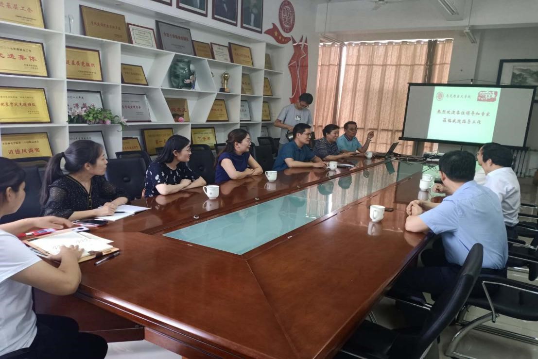 7月14日下午,省委教育工委有关部门领导来威尼斯官网调研基层党建工作。在听取学校有关汇报后,省委教育工委学校组织处副处长彭洪文来到马克思主义学院就师生党支部建设情况听取汇报并进行调研,学校党委副书记刘宝君、党委组织部部长李伯伟陪同调研,马克思主义学院党政班子成员、教师党支部、学生党支部有关人员参加调研活动。