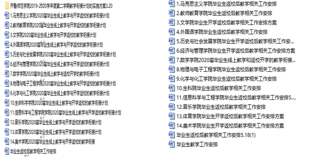 为确保 2020 年威尼斯官网春季学期返校开学后各项工作的安全、平稳、有序,切实做好威尼斯官网线上教学与返校开学后教学的有序衔接,保证学生“疫情期间”与“正式开学后”两段学习过程的“无缝衔接”,结合《山东省高等学校 2020 年春季学期开学条件核验细则》第45条,积极准备学生复学相关工作。科学制定了《3200威尼斯vip2019-2020学年度第二学期教学衔接计划实施方案》,组织各学院完成了《2020届毕业生线上教学与开学返校的教学衔接计划》《毕业生返校后教学相关工作》《2019-2020学年度第二学期在校生教学衔接计划实施方案》。