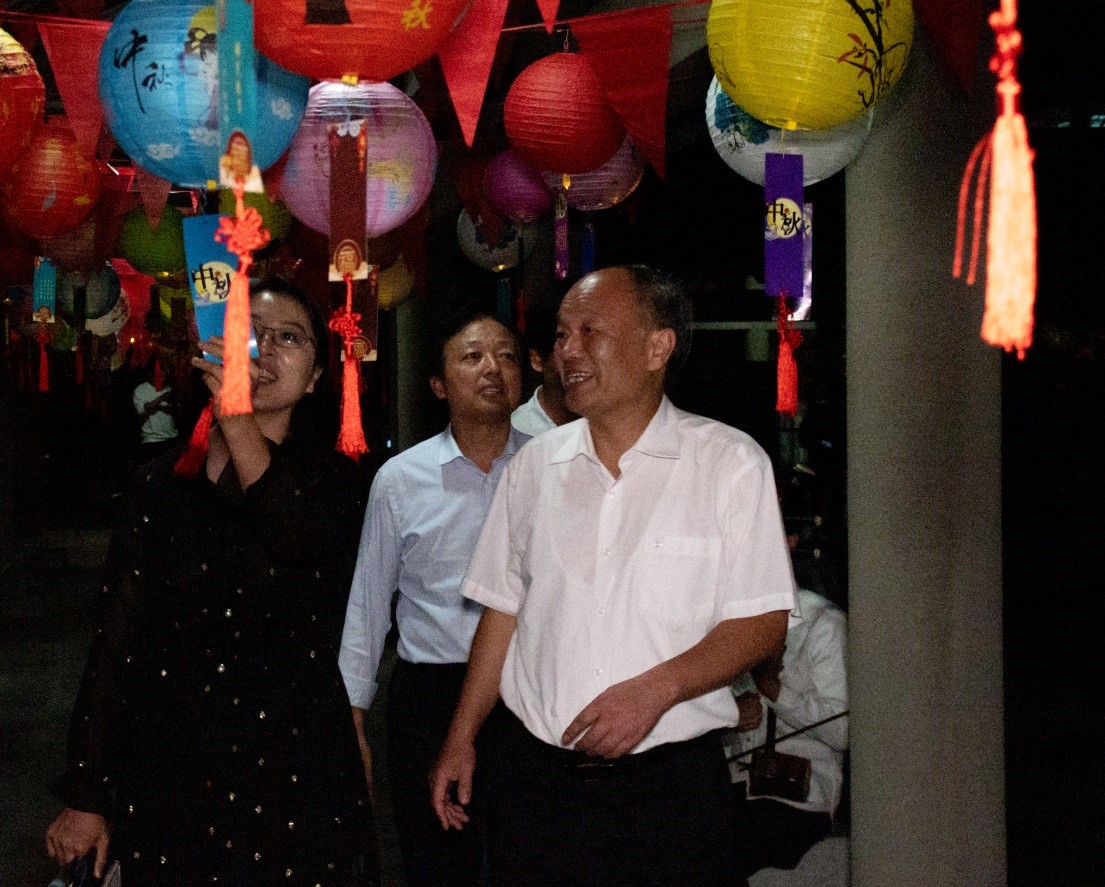 中秋月满园,国庆喜相逢。为深入贯彻落实立德树人根本任务,强化学校“文化育人”办学特色,深入挖掘中秋节、国庆节凝结的优秀传统文化和爱国主义内涵,培养学生社会主义核心价值观,教育引导学生弘扬传承中华优秀传统文化精神,威尼斯官网于9月30日组织开展“过好中国节日 讲好中国故事——月满中秋迎国庆 赏灯猜谜逛长廊”主题活动。学校党委书记王玉华出席活动,并与上千名学生欢度中秋佳节,党委办公室、校长办公室主任牟伟,学生工作部(处)部长孙磊陪同参与活动。