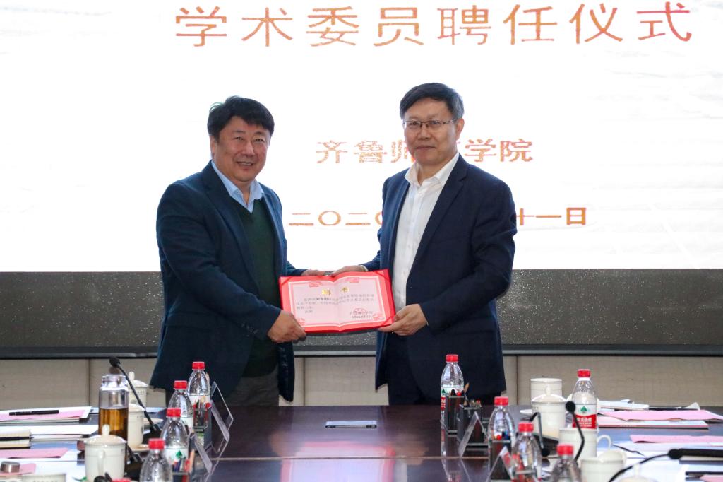 会议举行了学术委员聘任及产学研合作签约仪式。林松柏为刘春明、孔令让等9位学术委员颁发了聘书,代表学校与山东天泰种业有限公司签署了产学研合作协议。