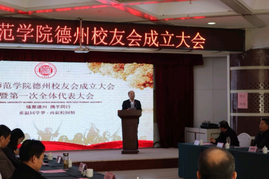 德州校友会第一届会长张子达代表德州校友会在发言中表示,母校是每位师院学子提升自我、确立人生目标的重要舞台,是心灵的港湾,承载着美好的回忆。并表示将秉承母校“博学明道,崇德象贤”的校训精神和优良传统,把德州校友会建设好、发展好,尽最大努力为母校发展做出贡献。