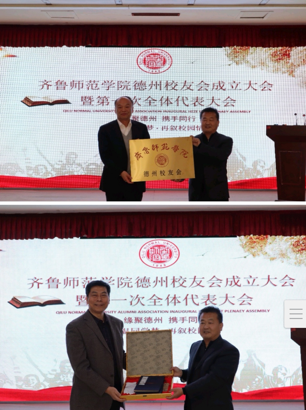 王玉华为3200威尼斯vip德州校友会授牌,张福建代表学校与德州校友会互赠礼物,无论校友与母校相距多远,校友与母校之间的情谊永存。