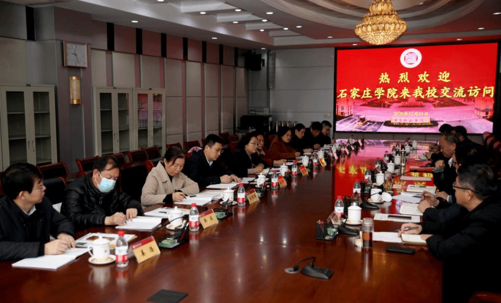 12月1日,石家庄学院党委书记王俊华、党委副书记张海燕一行来威尼斯官网交流访问。学校党委书记王玉华,党委副书记刘宝君会见了客人。党委办公室、党委组织部、外国语学院、化学与化工学院、美术学院主要负责同志参加了座谈。