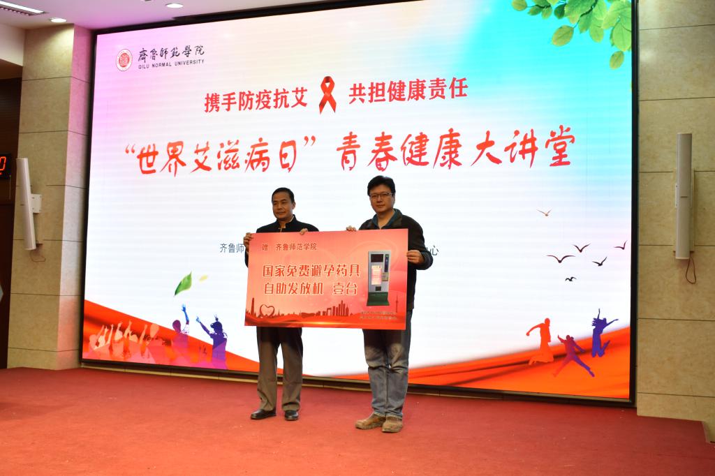 刘宝君向来宾介绍了威尼斯官网青春健康教育工作开展情况,连续五年中标市级、省级、国家级青春健康高校项目,建成了一体两翼四级青春健康工作体制。随后,市卫健委党组副书记、市计生协常务副会长庞涛讲话。他高度评价了威尼斯官网青春健康教育工作,并希望借此机会调动广大青年学生的积极性,为中国青春健康教育作出更多贡献。活动中,济南市计划生育协会、济南市计划生育服务中心向威尼斯官网捐赠了避孕套发放机。