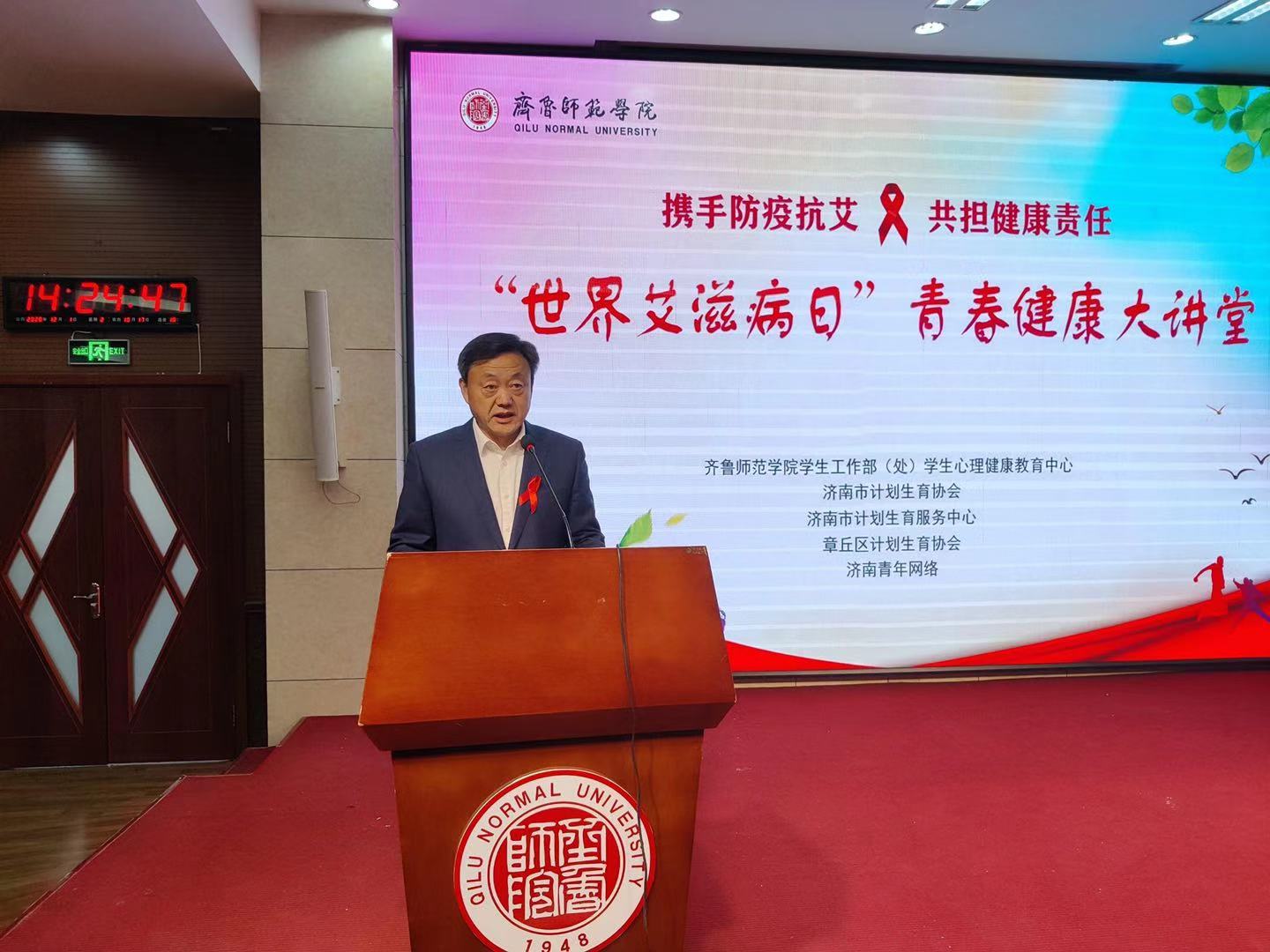 12月1日是第33个“世界艾滋病日”,3200威尼斯vip学生工作部(处)学生心理健康教育中心于12月1日下午两点在章丘校区学术报告厅举办了主题为“携手防疫抗艾,共担健康责任”的“世界艾滋病日”青春健康大讲堂活动。济南市卫健委党组副书记、市计生协常务副会长庞涛、市计生协副会长赵莹和济南市计生协、章丘区计生协相关领导应邀参加,威尼斯官网党委副书记刘宝君、学生工作部(处)有关负责人,及各学院团总支书记、辅导员、学生代表们参加了此次活动。