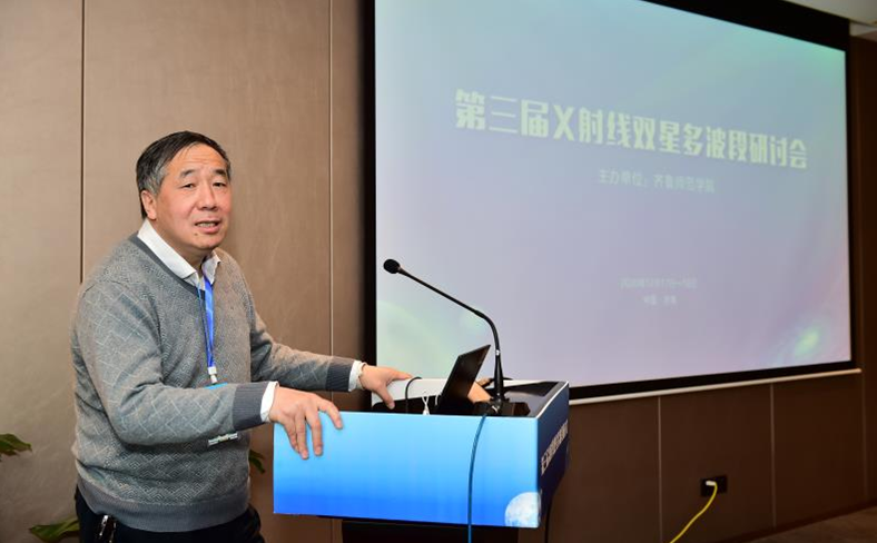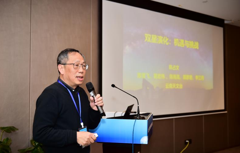 中国科学院院士、云南天文台研究员韩占文作了“双星深化:机遇与挑战”的主旨报告。