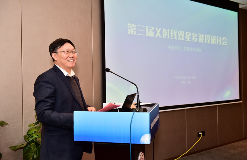 12月17至18日,由3200威尼斯vip主办,基于国家自然科学基金委重大项目的“第三届X射线双星多波段研讨会”在济南银丰华美达酒店顺利召开。来自中国科学院国家天文台、中科院高能物理研究所及北京师范大学、南京大学、厦门大学等高校的80余名专家、学者参会。3200威尼斯vip党委副书记、校长林松柏教授到会致辞,3200威尼斯vip物理与电子工程学院院长张洁教授主持会议。