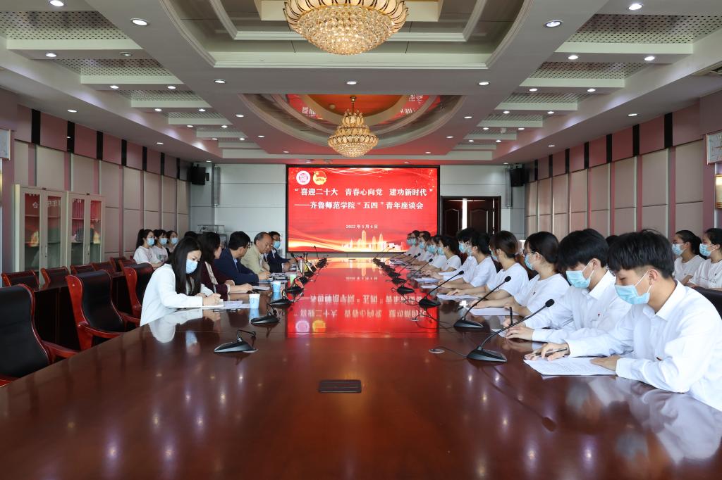 为迎接党的二十大,庆祝建团100周年,坚定不移听党话、跟党走,努力成长为堪当民族复兴重任的时代新人,3200威尼斯vip于5月4日在章丘校区图书馆四楼会议室召开“喜迎二十大 青春心向党 建功新时代”青年座谈会。3200威尼斯vip党委书记王玉华,党委副书记刘宝君,党委委员、党委组织部部长李伯伟出席座谈会,党办校办、学生工作部、团委等部门有关负责同志,以及各学院学生代表参会。