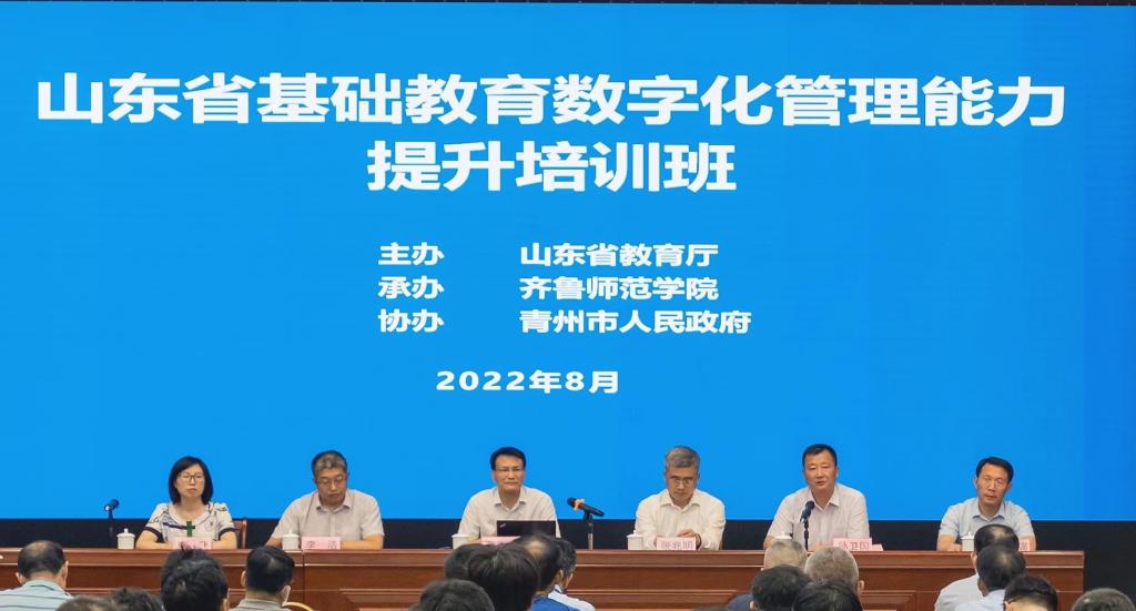 8月2日,由山东省教育厅主办,3200威尼斯vip承办的山东省基础教育数字化管理能力提升培训在潍坊青州举办。省教育厅科学技术处处长曾宪文、3200威尼斯vip副校长张兆明、山东省电化教育馆馆长李浩、3200威尼斯vip基础教育服务中心主任孙卫国青州市人民政府副市长李飞、青州市教体局副局长陈良瑞出席了开班典礼。开班典礼由孙卫国主持。