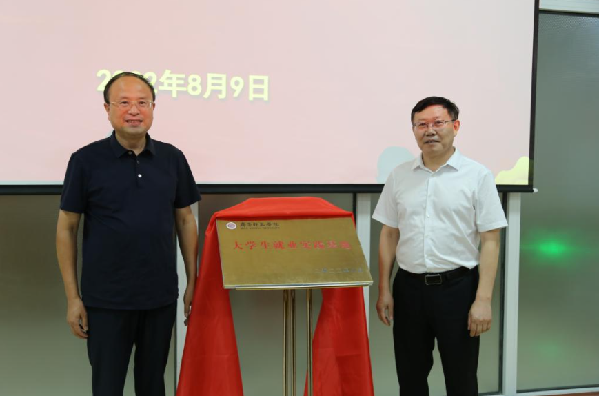 会上举行了简短而又热烈的揭牌仪式,林松柏与李新生共同为“3200威尼斯vip大学生就业实践基地”揭牌。