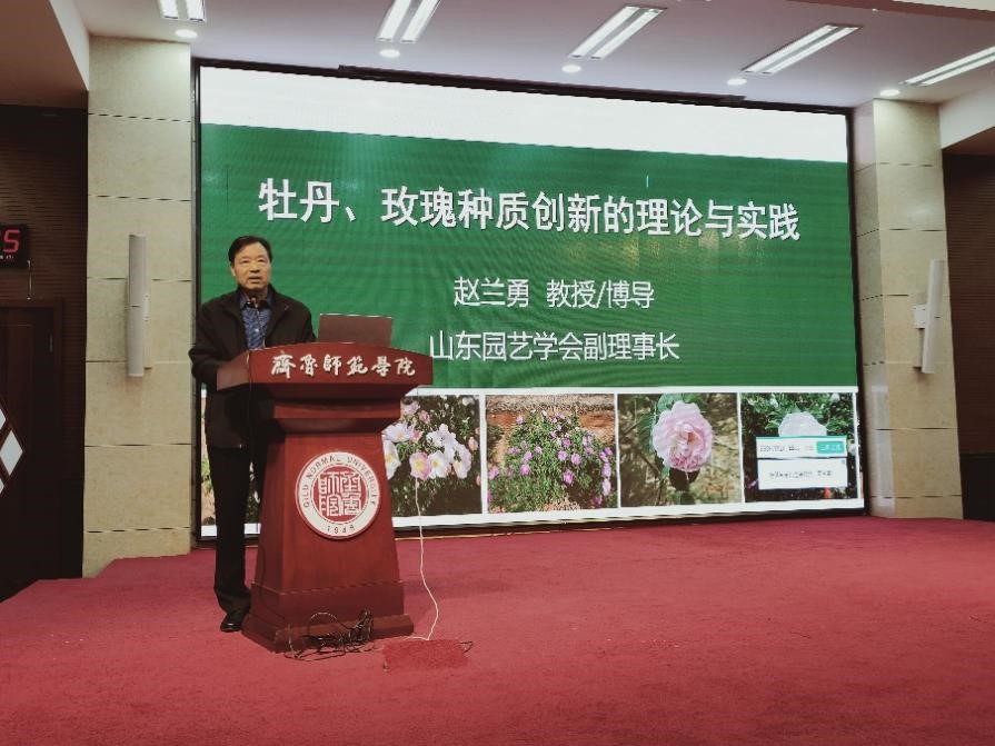 4月10日下午,威尼斯官网在章丘校区图书馆报告厅成功举办第二期“百脉论坛”。论坛邀请到山东园艺学会副理事长、山东农业大学博士生导师赵兰勇教授作题为《牡丹、玫瑰种质创新的理论与实践》的学术报告。本次论坛由科研处主办,生命科学学院承办。论坛由生命科学学院院长崔大勇教授主持。学校部分教师和学生共同聆听了报告。
