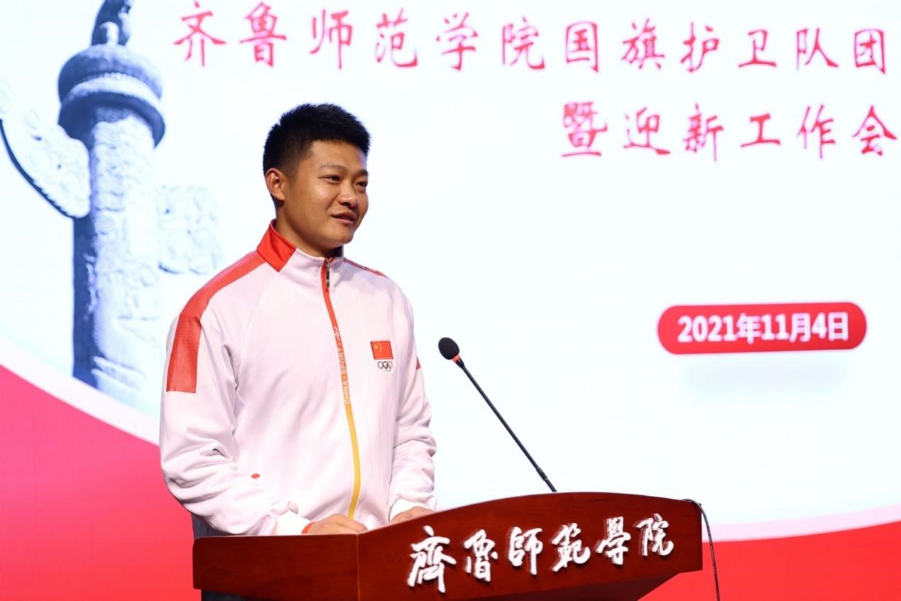 会议中,已经毕业现就读于山东师范大学研究生学院的老队员代表赵建滕、历届国护队队长和学生代表进行了典型发言。他们从自身经历和真实感受出发,带量全体成员回顾国旗护卫队发展历程,回忆和总结在国护队的成长的点点滴滴,倡导全体队员要继承并发扬“五铁精神”和队训,学好本领做好本职工作守护国旗。